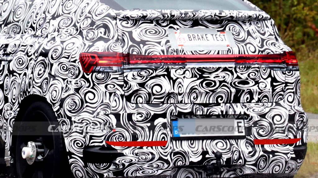 Not visible, but almost certainly present beneath the “brake test” sticker on the prototype, is an illuminated four-ring Audi badge.